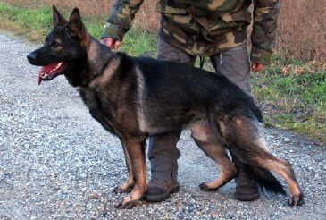 Mittelgroß, mittelkräftig, trocken und fest. Normaler Kopf, hoher Widerrist, Kruppe kurz und abschüssig. Der Oberarm ist steil gelagert, die Hinterhand sollte besser durchgewinkelt sein. Vor- und Unterbrust darf sich noch weiter entwickeln. Normale Front. Geradegehend zeigt er genügend Schrittweite. Wesen sicher, TSB ausgeprägt; läßt ab.