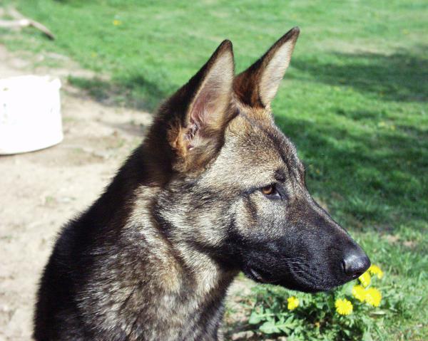 Körbericht: Übermittelroßer, mittelkräftiger, etwas gestreckter, grauer Rüde mit noch gutem Gepräge. Flacker Widerrist mit leichtem Knick dahinter, nicht voll gefestigte Rückenbänder. Bei guter Lage ist die Kruppe kurz, die Brustverhältnisse müssen sich noch vervollkommnen. Der Oberarm sollte länger sein und schräger liegen, die Hinterhand ist noch gut gewinkelt. Gerade Front, bei annähernd gerader Schrittfolge zeigt er flüssige Gänge, die jedoch mehr Raumgewwinn haben sollten. Er sollte sich in der Bewegung erhabener zeigen. Sicheres Wesen, TSB ausgeprägt:läßt ab.